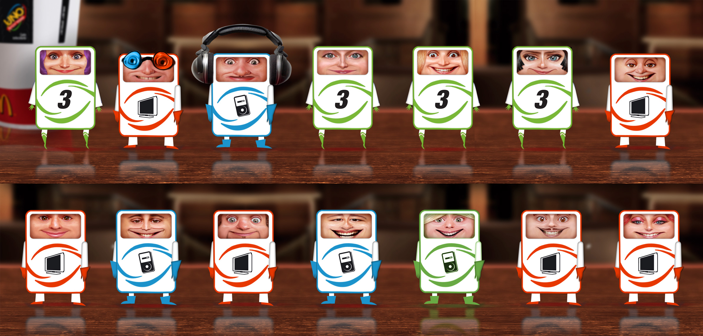 Cette campagne de bannières rich réalisée en vidéo se compose de petits sketchs funs. Les cartes Uno à collectionner sont personnalisées et animées par Romain Ségaud. Elles vous appellent à les détacher de leur paquets de frites brûlants ou d’un Mc Flurry gelé.