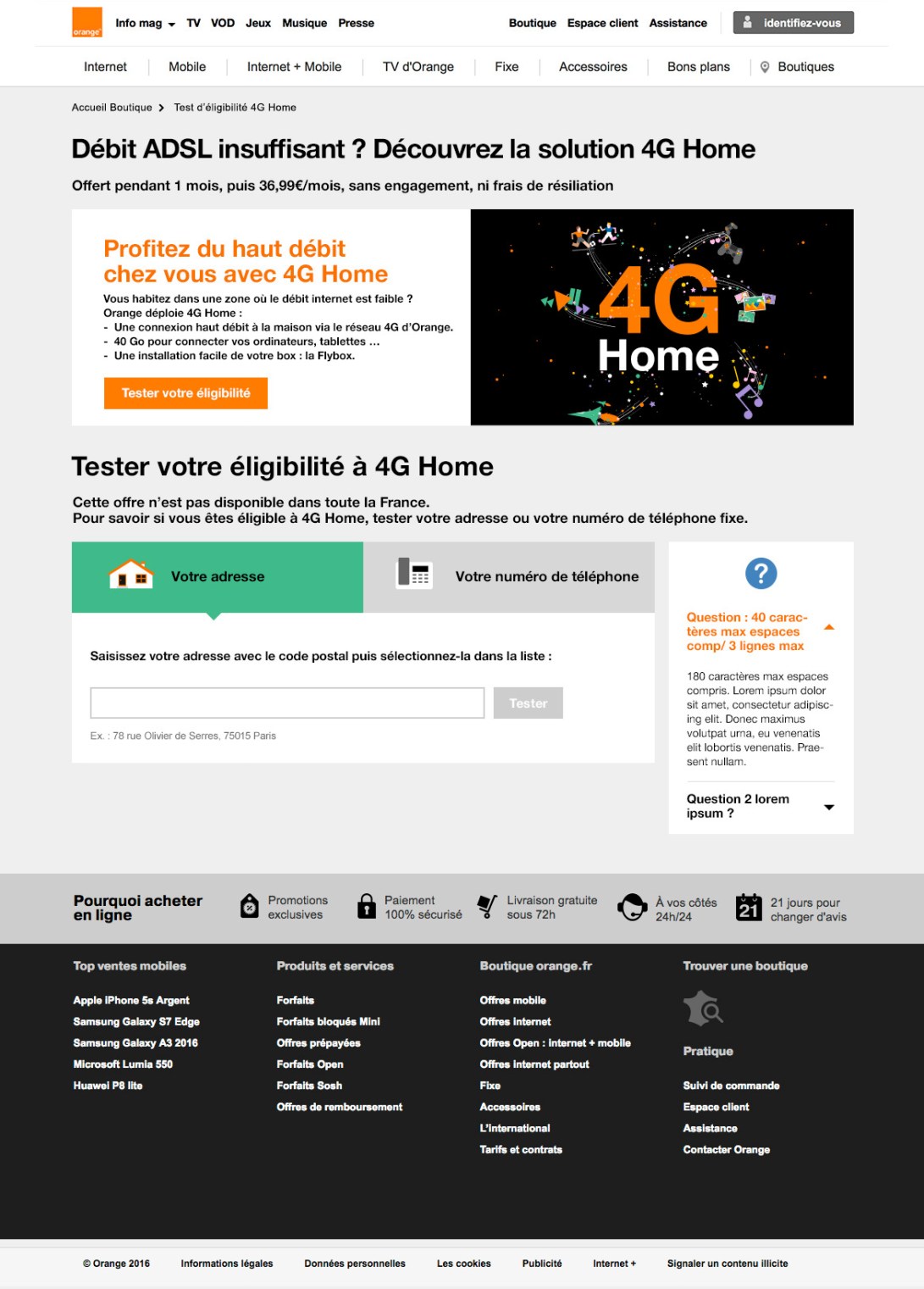 - Analyse du brief boutiques Sosh et Orange : quelles sont les problématiques spécifiques liées à la création du test d’éligibilité du service 4G Home ?