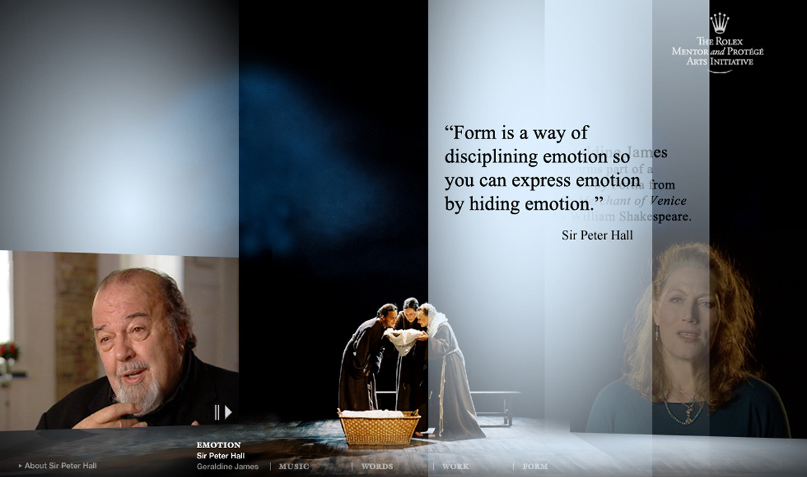 Rolex Mentor and Protégés DA, Sites Web Un site internet qui, tel un théatre, met en lumière les vidéos de Sir Peter Hall et de sa protégée pour Rolex Mentor. Similaire